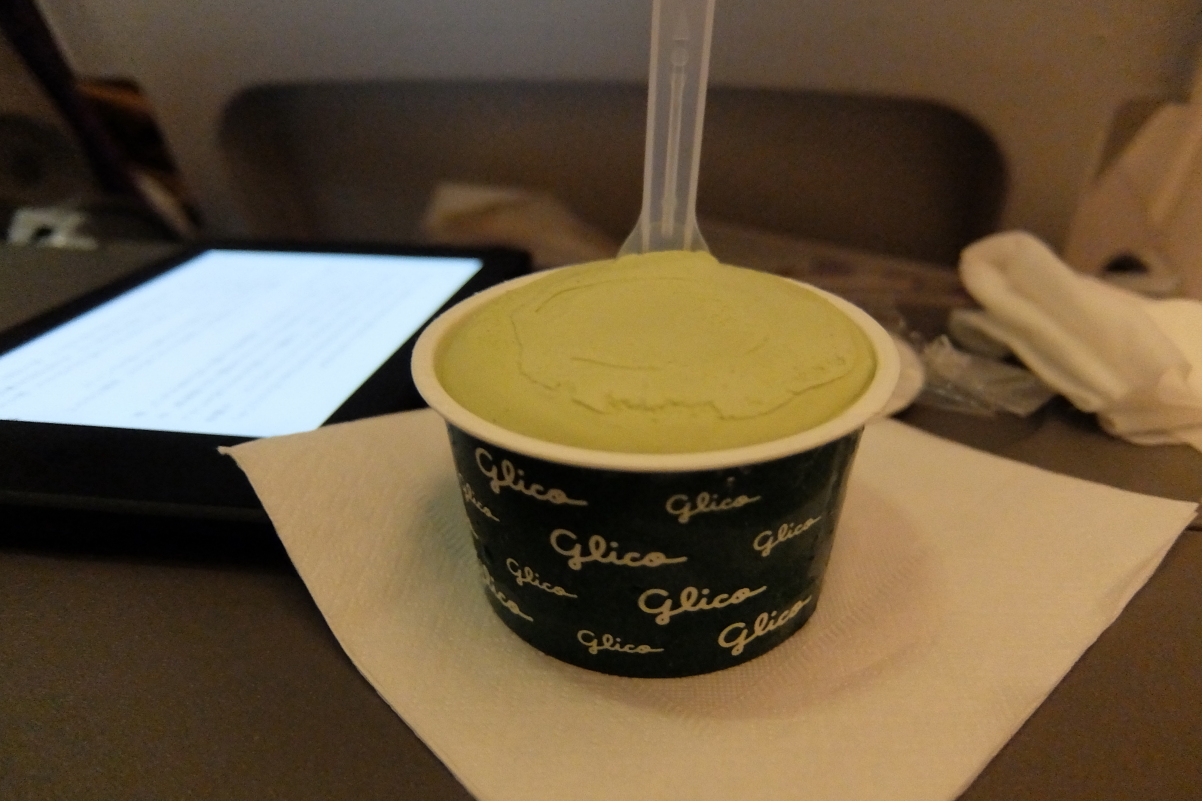 デザートはグリコの抹茶アイス。